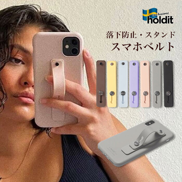 Holdit スマホ iPhone ベルト ストラップ 落下防止ベルト 落下防止スライドベルト 背面ベルト スマホスタンド スタンド ベルト付きホールド スマホリング バンド付きケース フィンガーリング 片手 グリップ ホルダー アクセサリ おしゃれ 全機種 かわいい