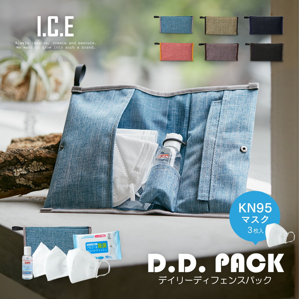 ★今ならプレゼント特典あり★衛生用品をまとめてひとつに【送料無料】I.C.E DD PACK ディリーディフェンスパック KN95マスク3枚入り+除菌ジェル+除菌シート付き【DDP20-01】マスクケース 除菌ケース マスク収納 マスクポーチ