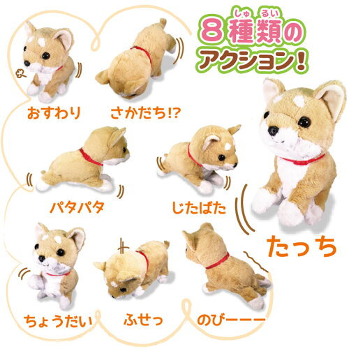 あそぶの大好き 柴犬 まめ太動くおもちゃ 動くぬいぐるみ■商品詳細音センサーで音に反応!可愛く鳴きながらランダムに8種類のアクションをします!アクションの種類は「ふせ」「逆立ち!?」「ちょうだい」「たっち」「じたばた」「のびーー」「パタパタ」「おすわり」の8種です。