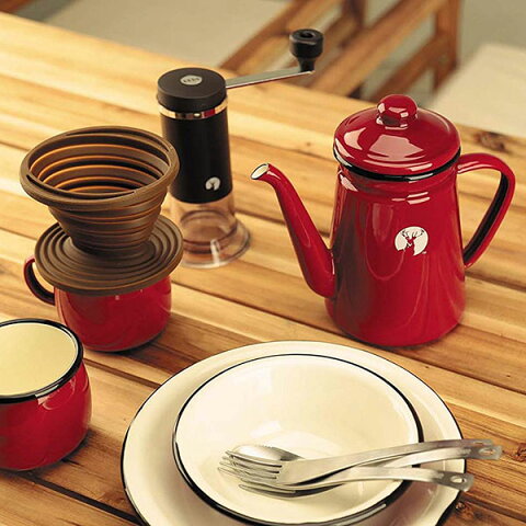 匂いや色が移りにくい、おしゃれなコーヒーポット琺瑯(ホーロー)は熱伝導がよいためすぐに温まりやすく、耐久性・耐熱性に優れているので、アウトドアシーンでも活躍します。