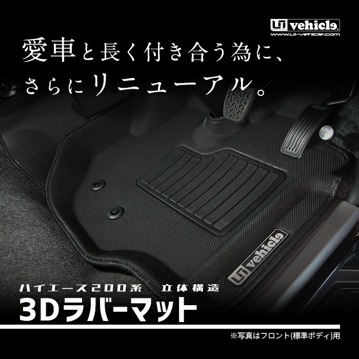 ハイエース 200系 3Dラバーフロアマット フロント 3ピースセット 1型 〜 6型(最新)対応! 標準ボディ(スーパーGL,S-GL,DX)用 専用設計でジャストフィット!! 立体構造!! 滑り止め付! 水で丸洗いOK! 簡単取付! 【ユーアイビークル/UIvehicle】