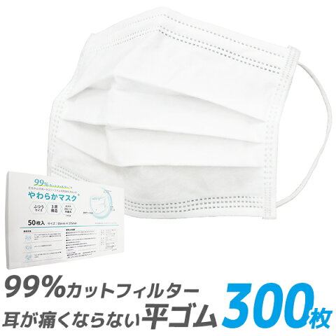 【期間限定価格】送料無料【99%カット】やわらかマスク マスク 50枚 6箱セット 300枚 在庫あり 平ゴム 耳が痛くならない 175mm 165mm 145mm 不織布マスク 大人用 使い捨てマスク 不織布 マスク 小さめ 3層構造 白 ホワイト 高密度フィルター ウイルス 飛沫防止 送料無料